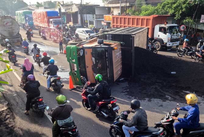 Kecelakaan itu sempat membuat arus lalu lintas di jalur pantura macet.