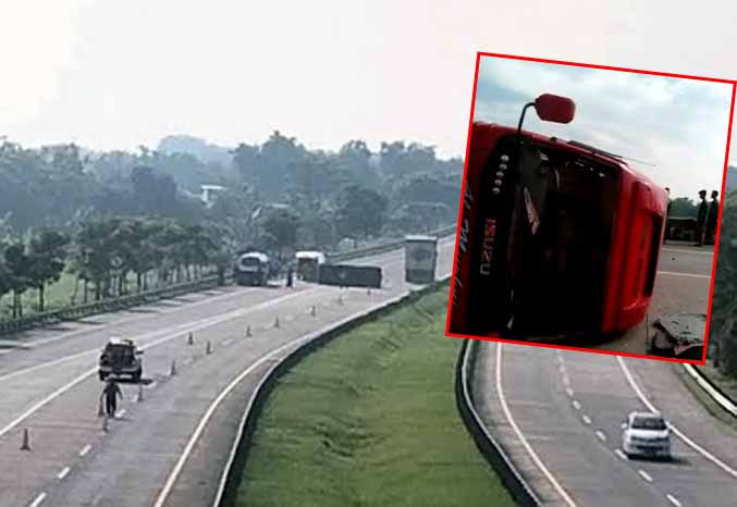 Tabrak Truk, Elf Terguling di Tol Gempol-Pasuruan, Lima Terluka