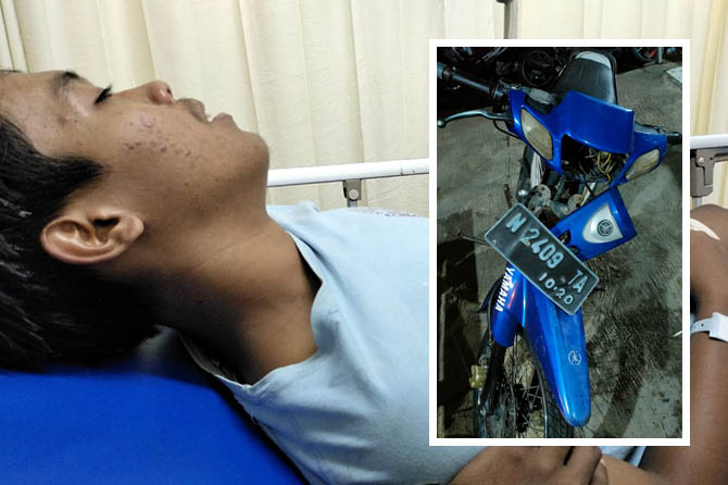 Usai korban terpeleset, motornya menabrak pagar rumah warga.