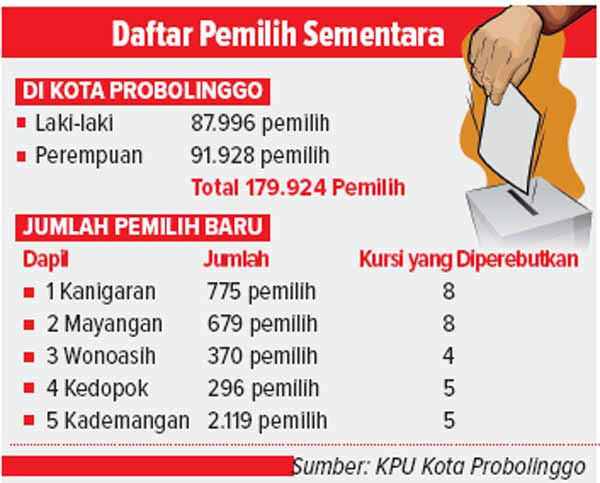 Komisi Pemilihan Umum (KPU) Kota Problinggo telah menetapkan 179.924 orang masuk dalam daftar pemilih sementara (DPS).