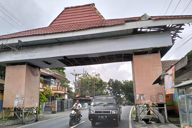 Kerusakan Gapura Wisata Prigen Kian Parah