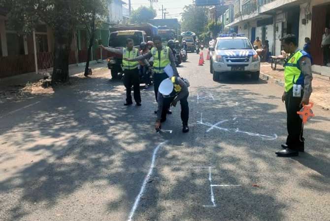 Korban tersenggol truk kontainer yang ada di samping kanannya. Serempetan itu, membuat korban hilang kendali.